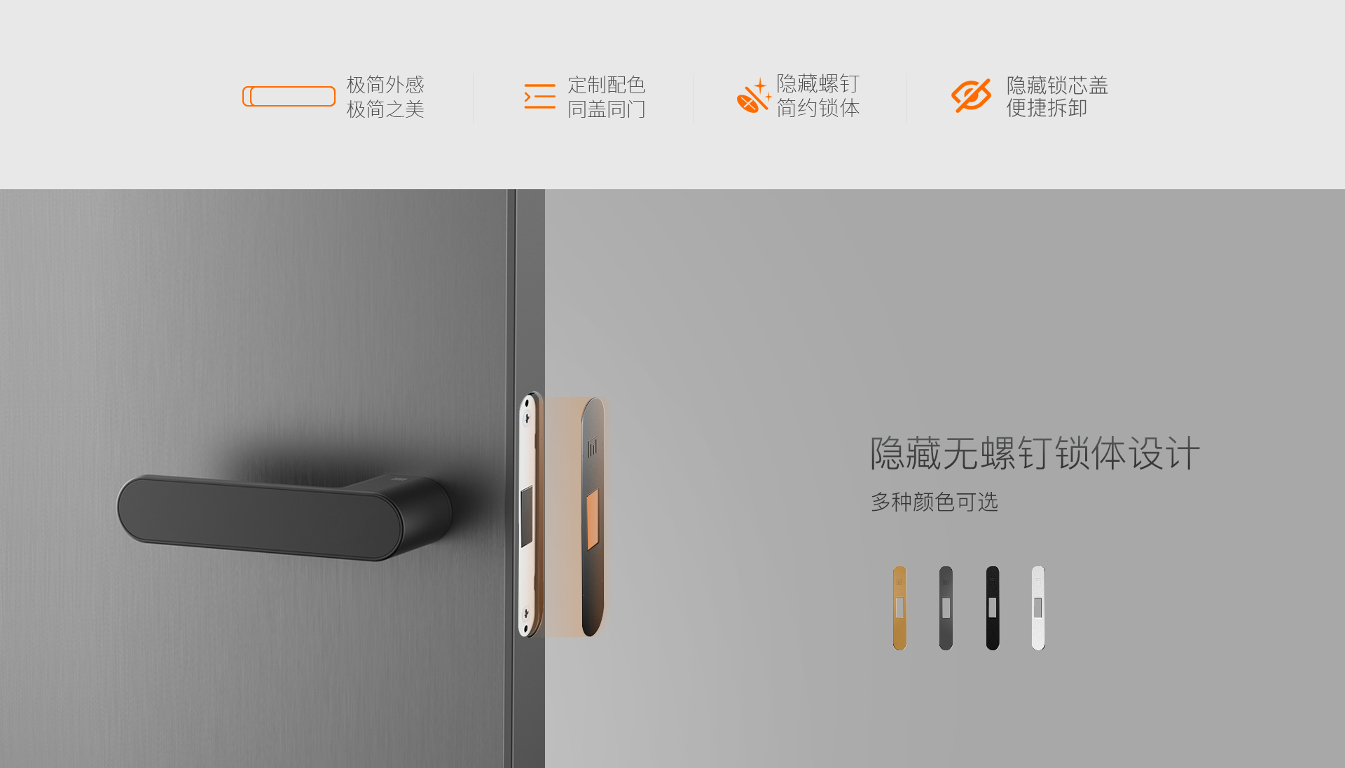 便捷拆卸隱藏鎖芯蓋設計、安裝后看不到鎖芯和螺釘